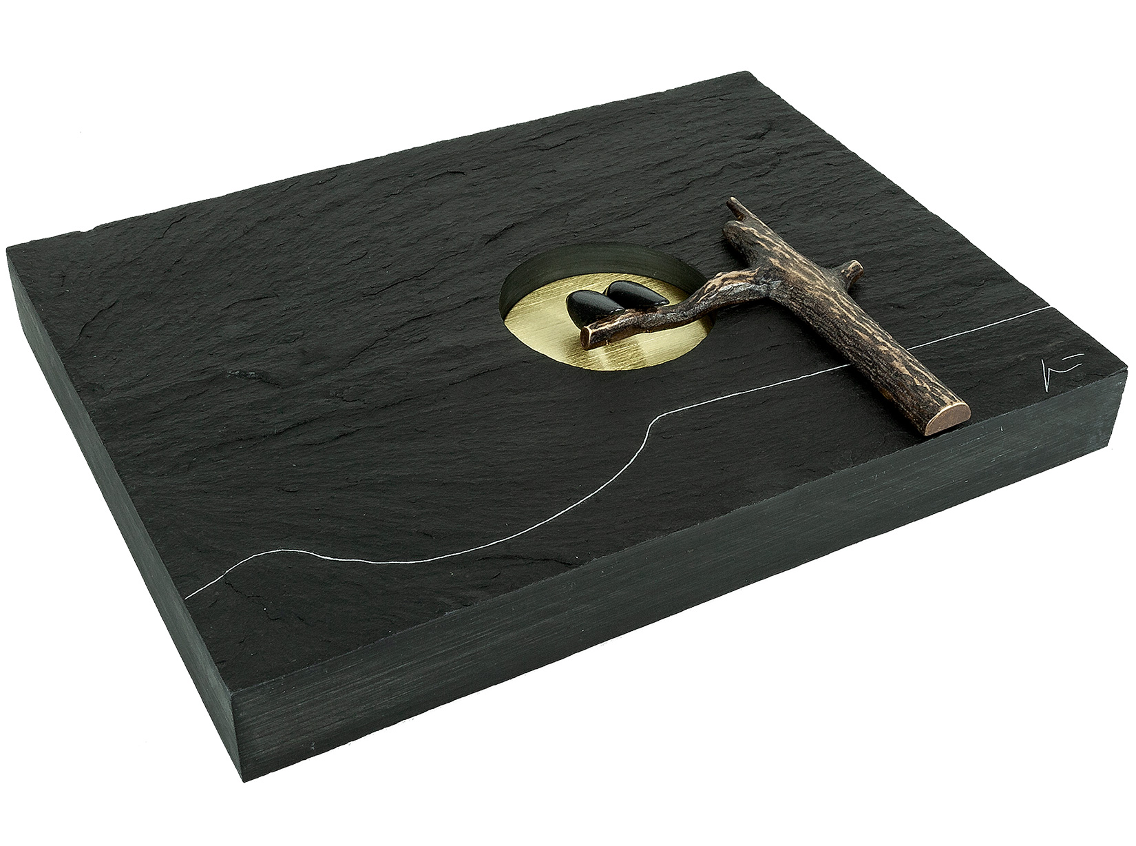 Wandobjekt aus Naturschiefer, Bronze und Messing