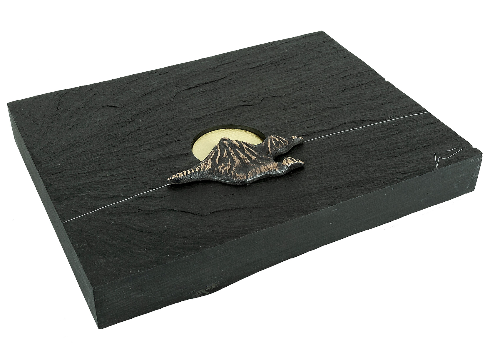 Wandobjekt aus Naturschiefer, Bronze und Messing