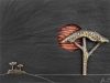 Im Hintergrund eine kleine Piniengruppe, die Landschaft ist angedeutet.