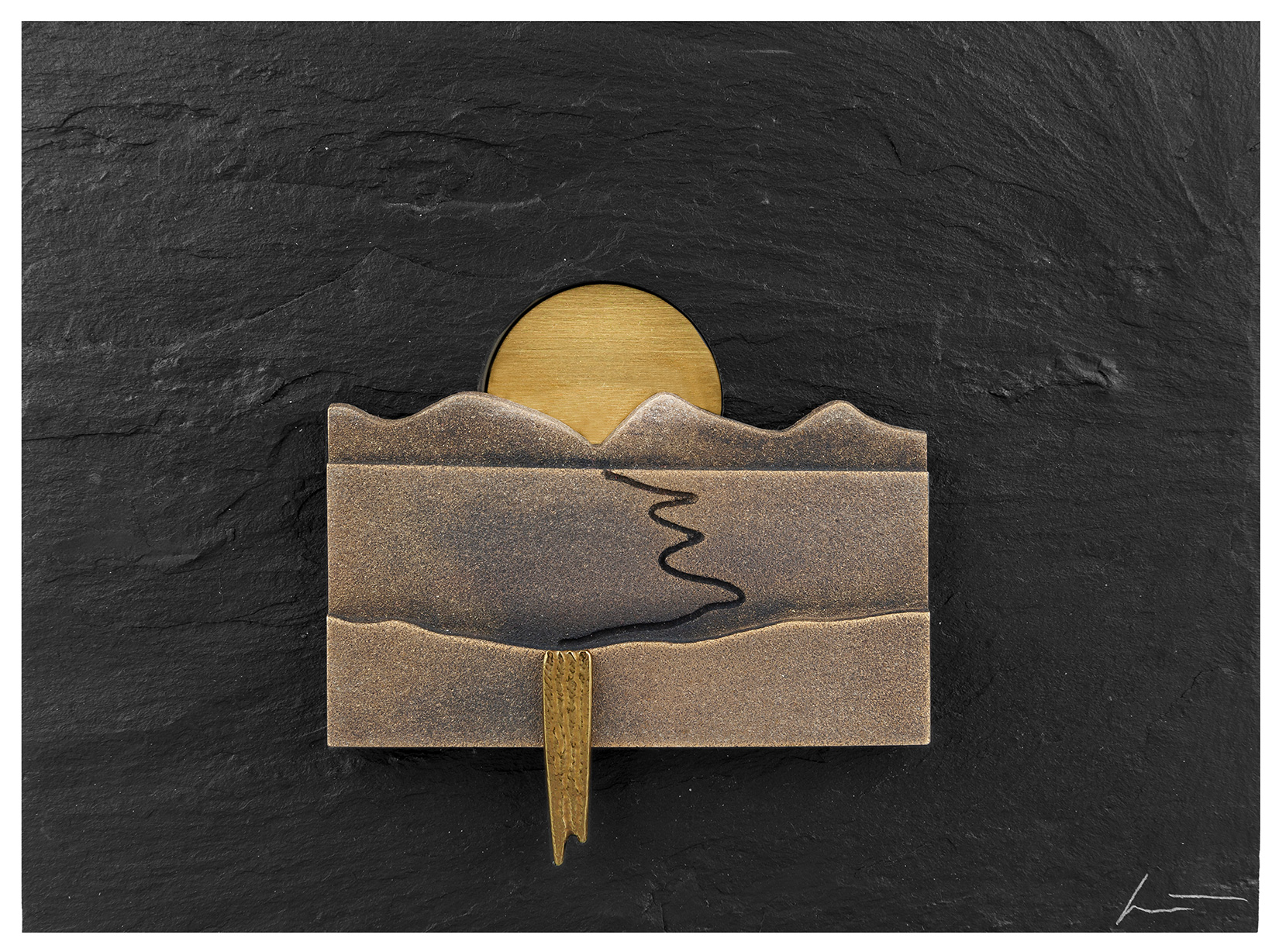 Wandobjekt aus Naturschiefer, Bronze und Messing
