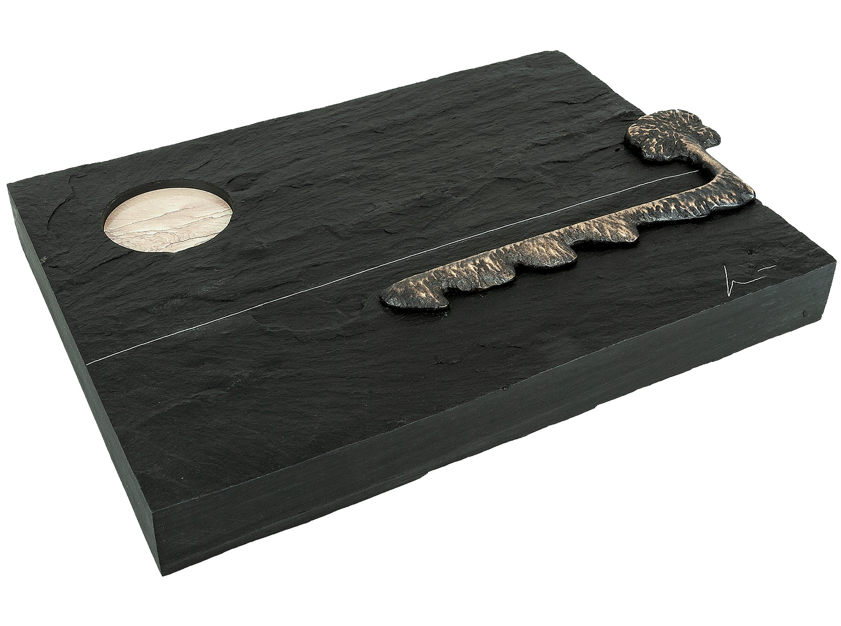 Wandobjekt aus Naturschiefer, Bronze und Messing