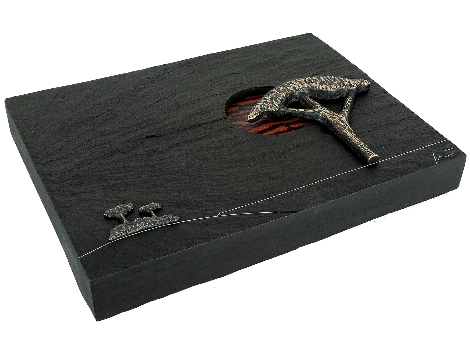 Wandobjekt aus Naturschiefer und Bronze